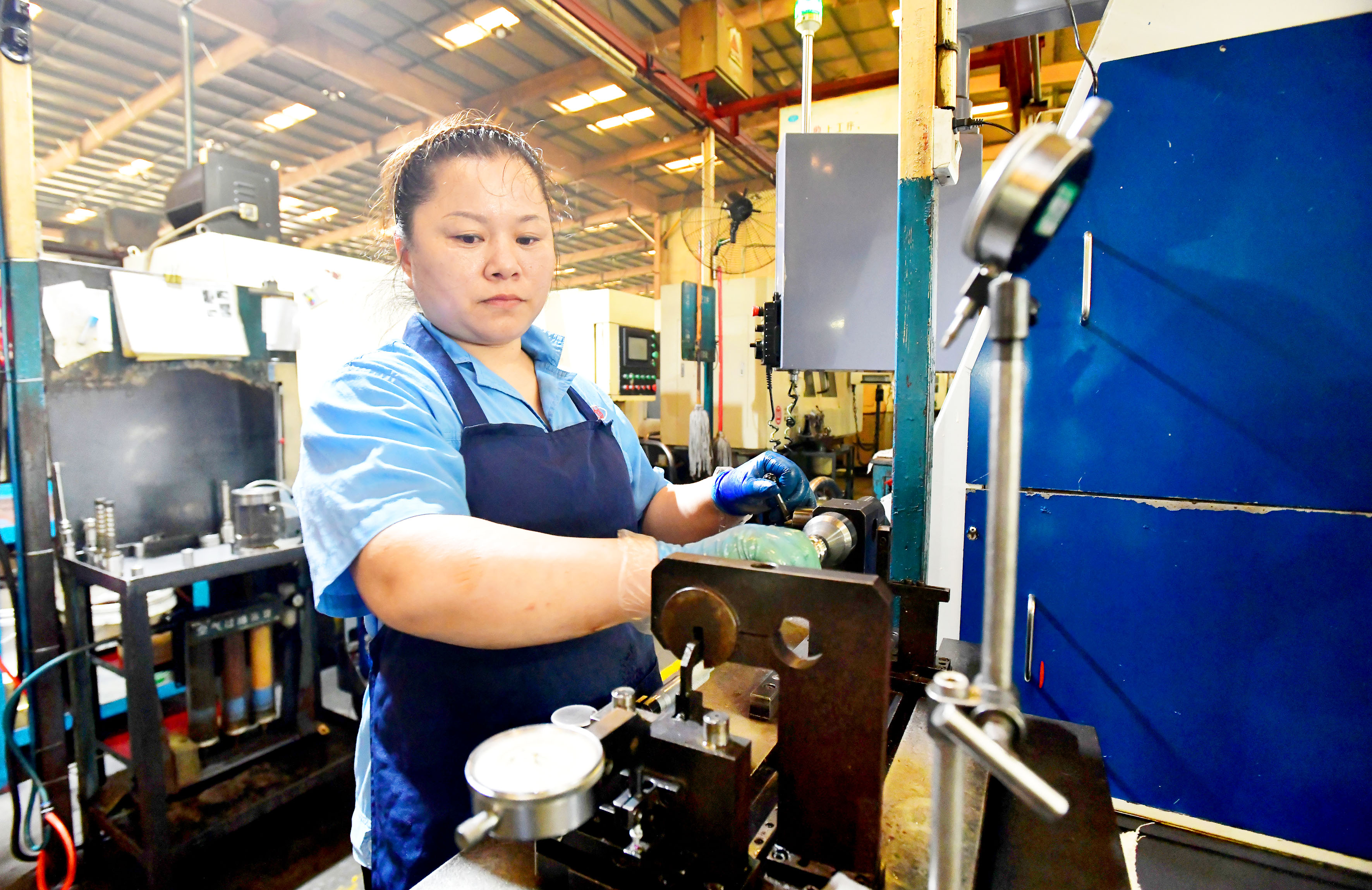 近日,咸宁高新区湖北三环汽车方向机有限公司车间,工人们正在机器旁忙碌。
