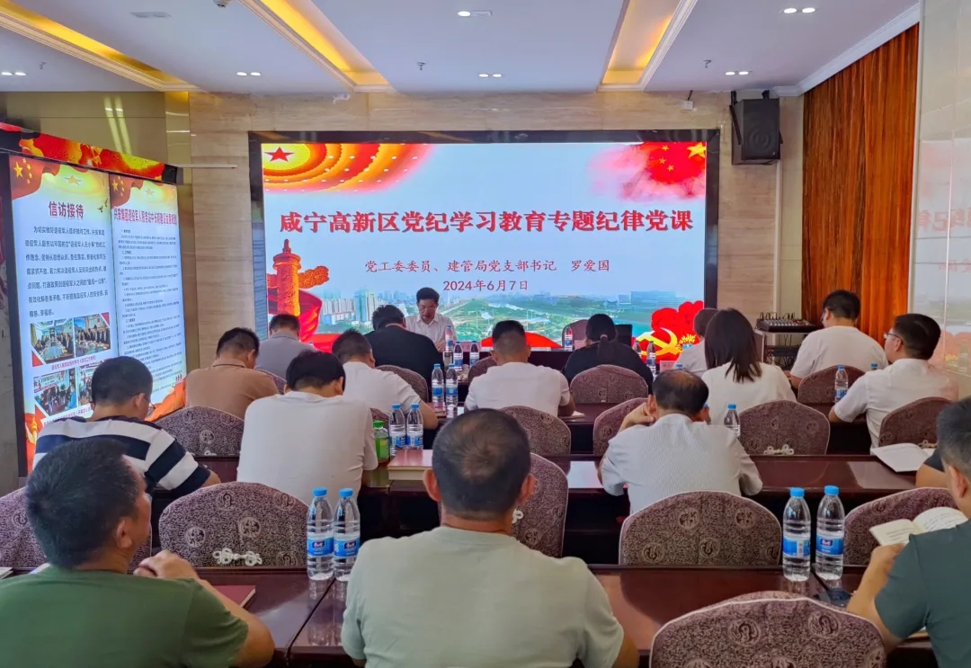 6月7日,咸宁高新区第一网格大党委组织开展党纪学习教育宣讲暨专题党课活动。咸宁高新区建设管理局全体党员、入党积极分子,园区第一网格企业党员和相关负责人参加。