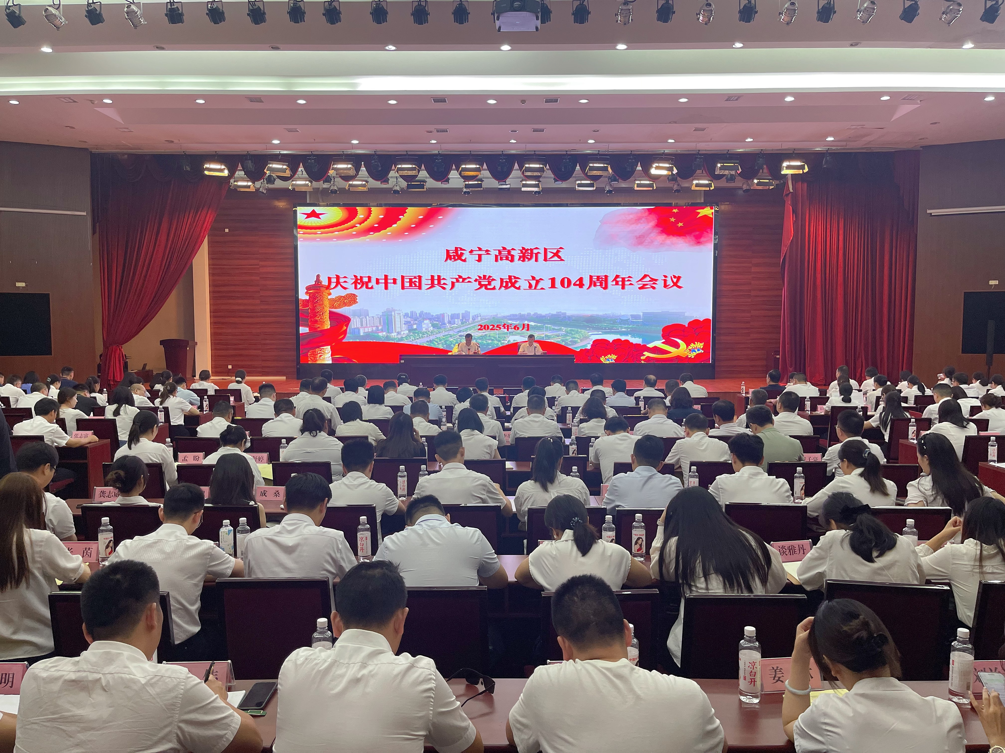 在喜迎中国共产党成立104周年之际,为回顾党的光辉历程,传承弘扬伟大建党精神,进一步增强各级党组织和广大党员凝聚力、向心力、战斗力,6月30日上午,咸宁高新区组织召开庆祝中国共产党成立104周年大会。