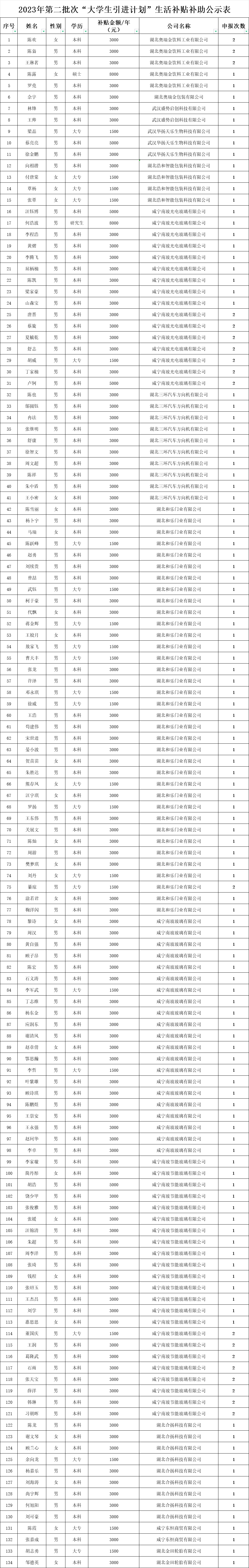 名 称: 2023年第二批次“大学生引进计划”生活补贴补助公示表 发布日期: 2024年02月05日