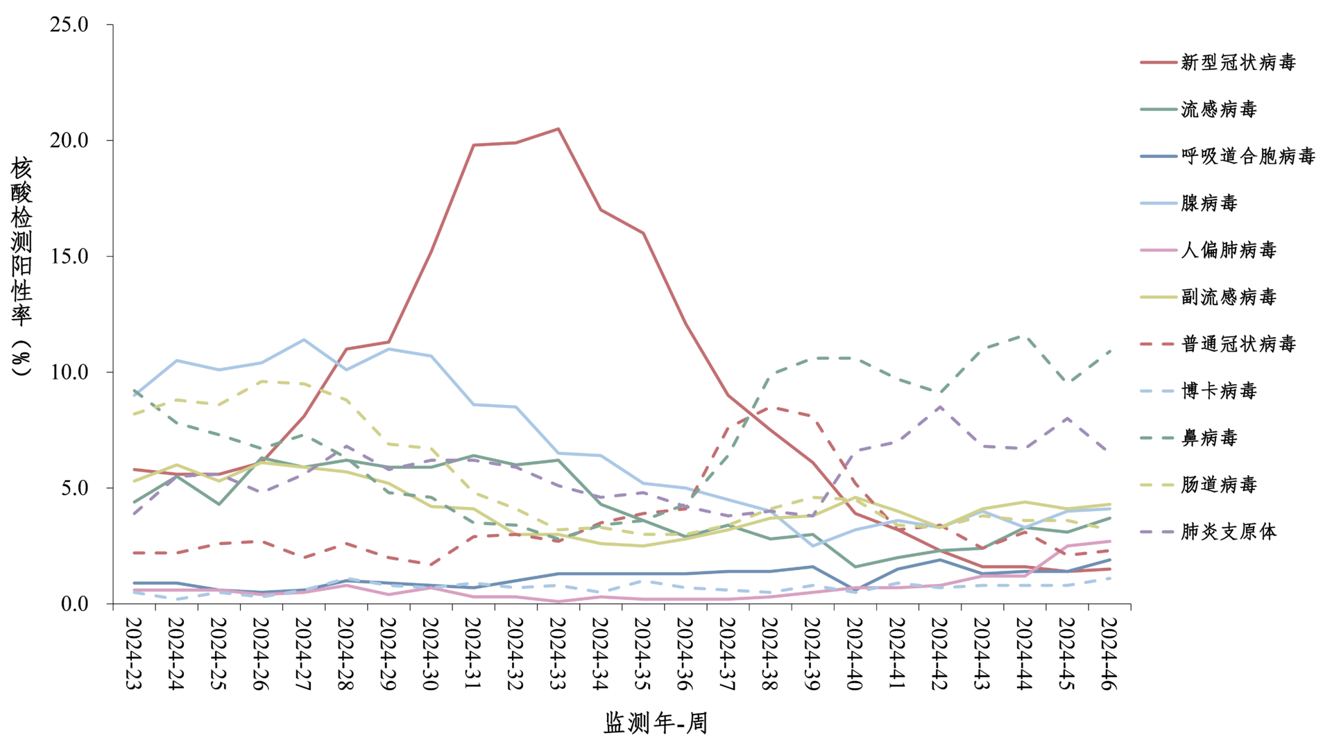 11月21日,中疾控首次在凯发k8官网发布“全国急性呼吸道传染病哨点监测情况”,此次为2024年第46周(11月11日~11月17日)的情况。