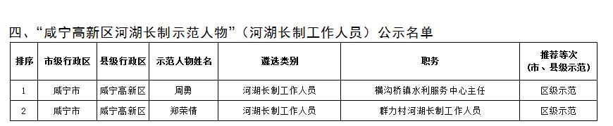 经基层推荐、相关单位申报和综合评审,在省、市两级创建的基础上,拟差额遴选出区级示范河库6个、示范人物7个。为体现公开、公正、公平原则,现将13个拟遴选对象名单予以公示,听取社会各界意见,接受广大群众监督。如有意见和建议,可向咸宁高新区河湖长制办公室反映。