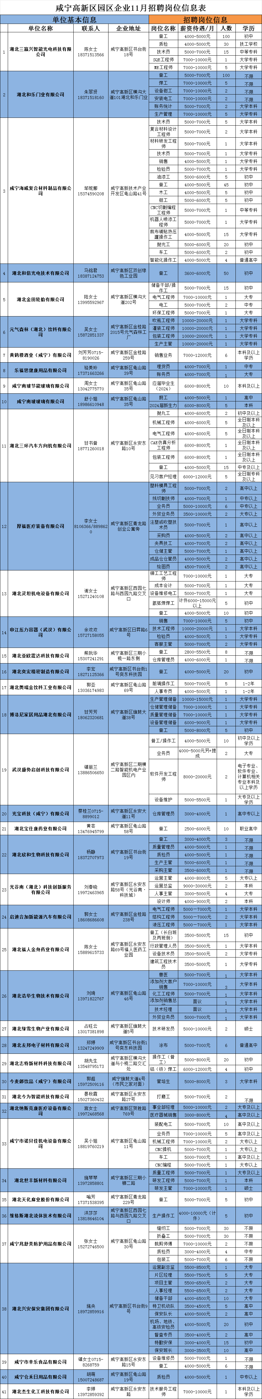 名 称: 咸宁高新区发布11月份企业招聘信息(附岗位表) 发布日期: 2023年11月17日