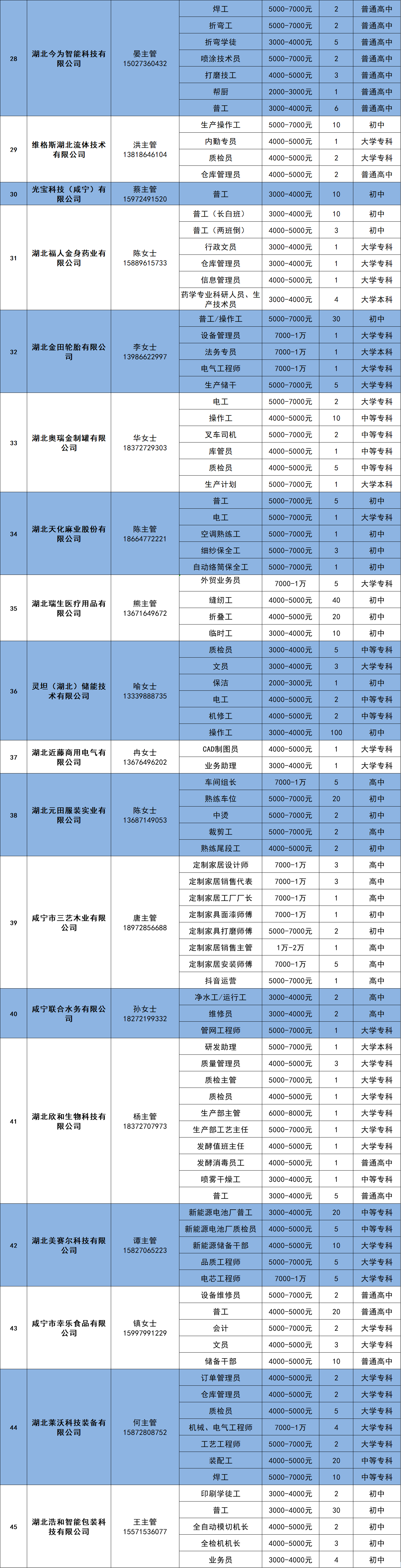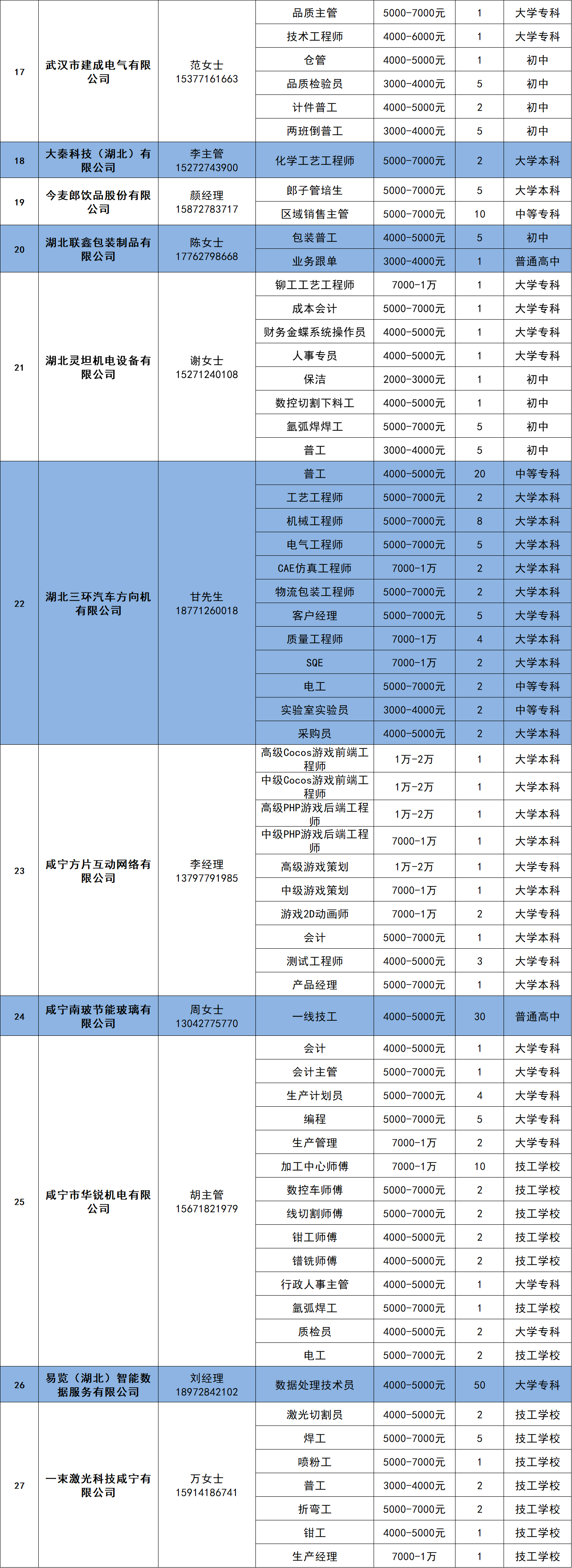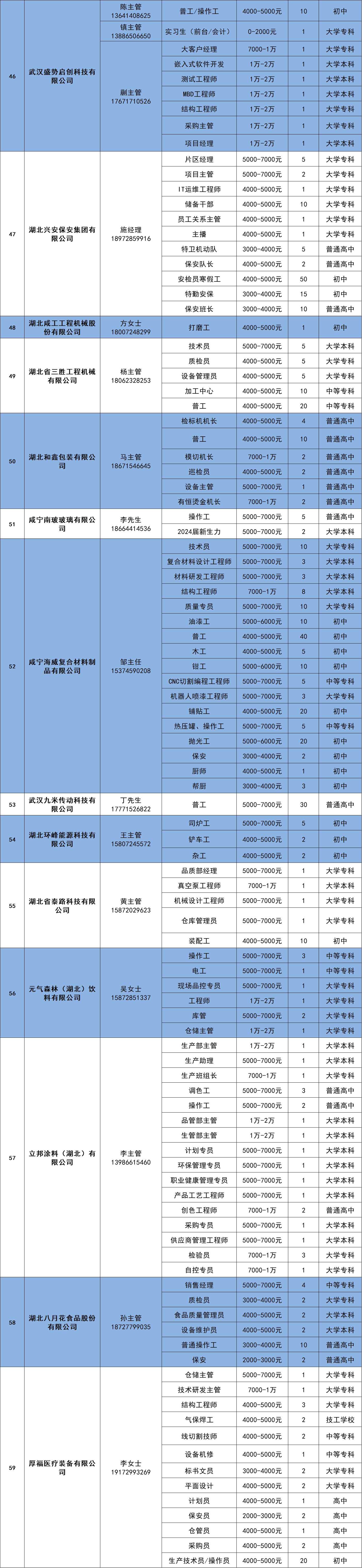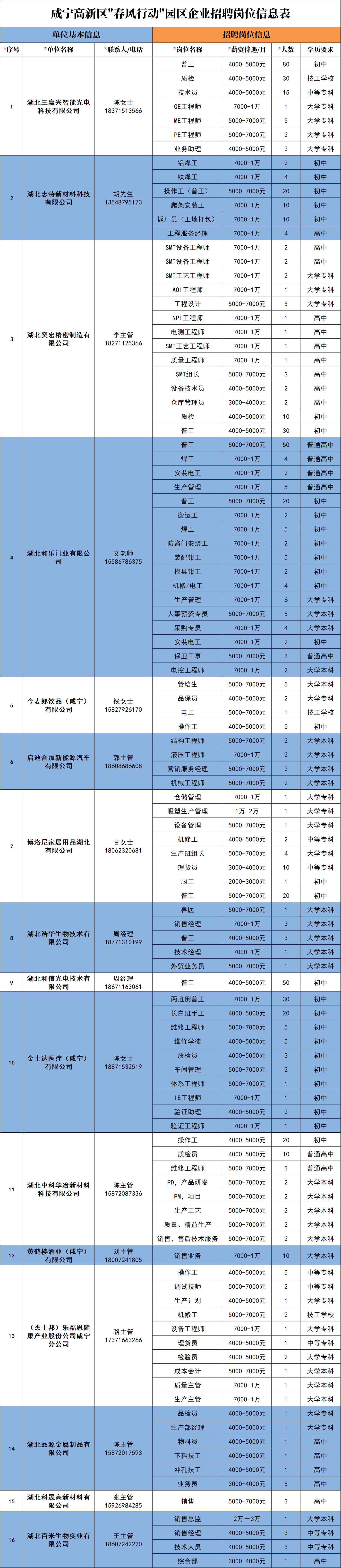 名 称: 咸宁高新区发布2024年“春风行动”园区企业招聘信息(附岗位表) 发布日期: 2024年02月18日