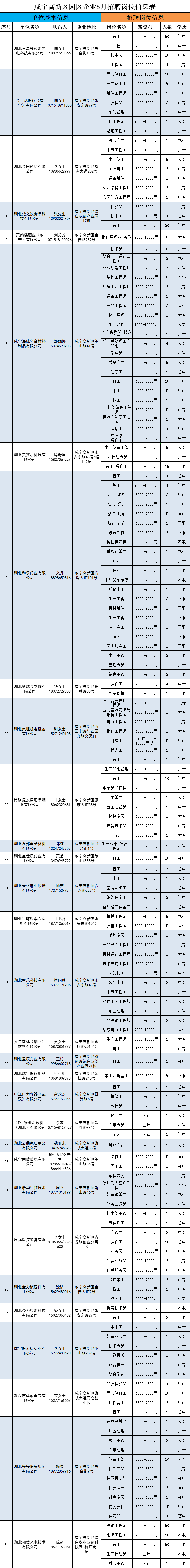 名 称: 咸宁高新区园区企业5月招聘信息(附岗位表) 发布日期: 2024年05月17日