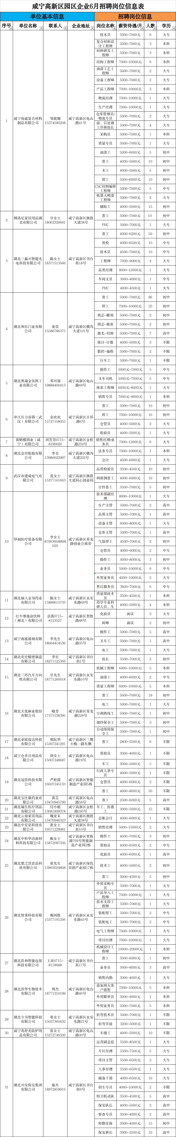 名 称: 咸宁高新区园区企业6月招聘信息(附岗位表) 发布日期: 2024年06月18日