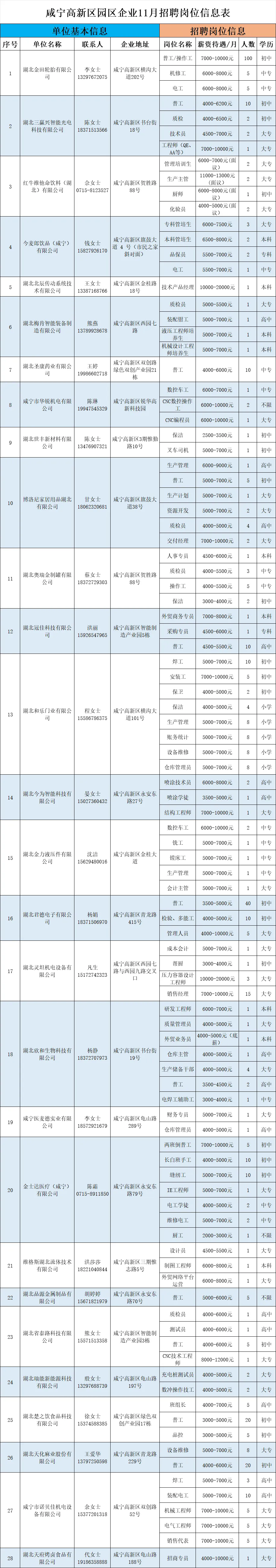 名 称: 咸宁高新区园区28家企业11月份招聘信息岗位表 发布日期: 2025年11月17日
