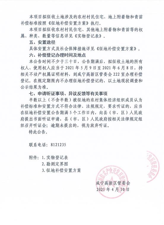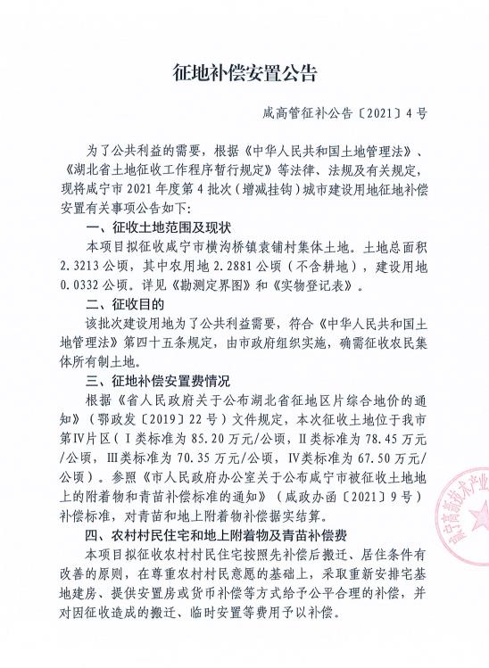 名 称: 高新区2021年度第4批次征地补偿安置公告 发布日期: 2021年04月23日