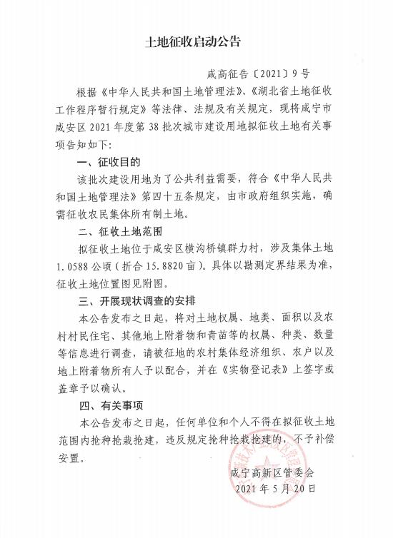 名 称: 土地征收启动9号公告 发布日期: 2021年05月21日