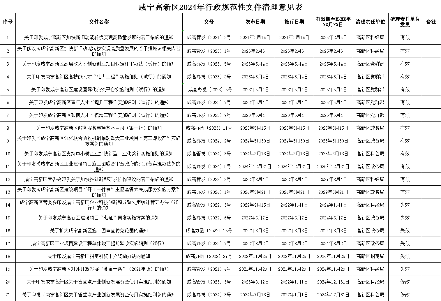 名 称: 咸宁高新区2024年行政规范性文件清理意见公示 发布日期: 2025年01月07日