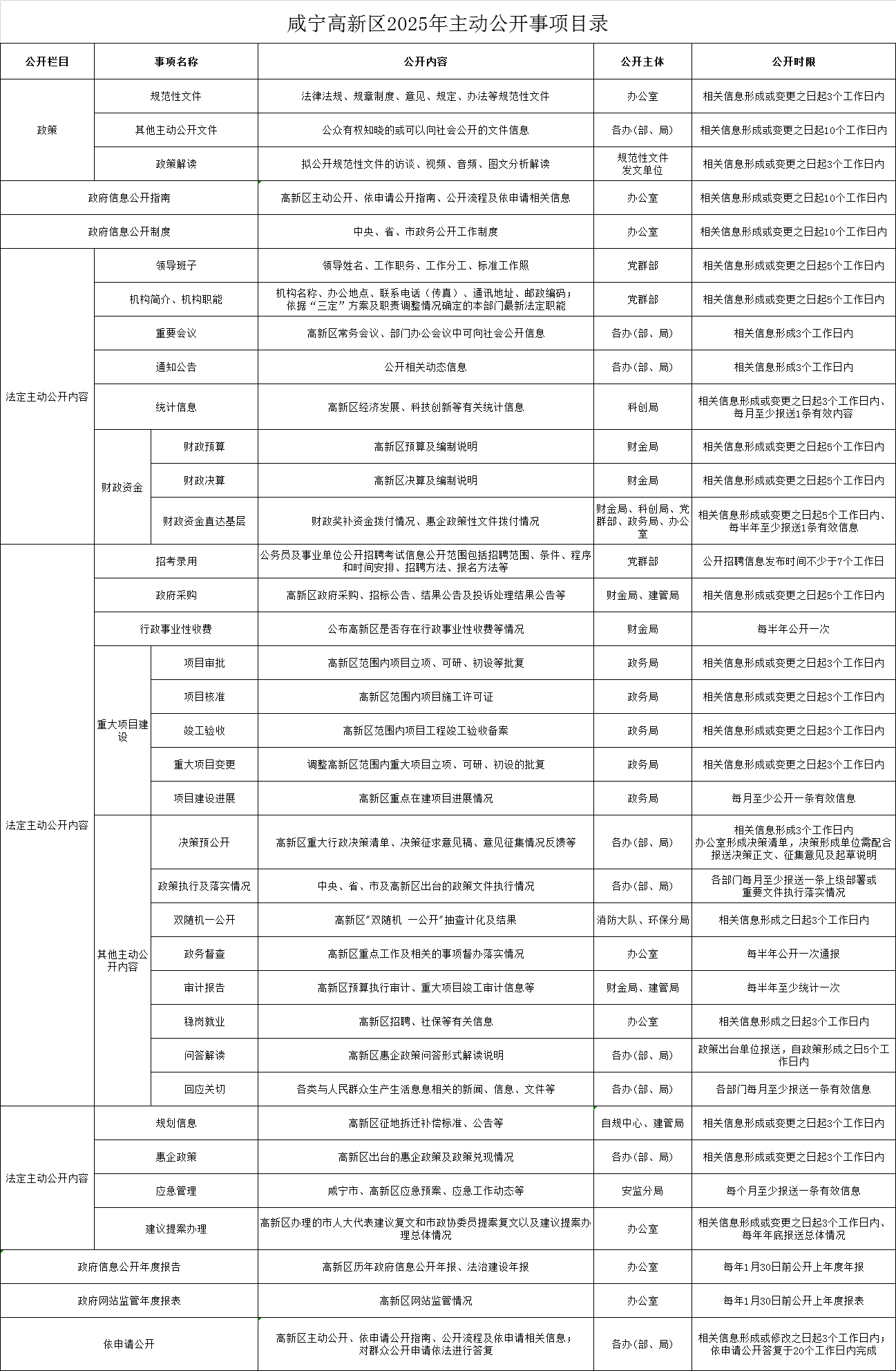 咸宁高新区2025年主动公开事项目录.et